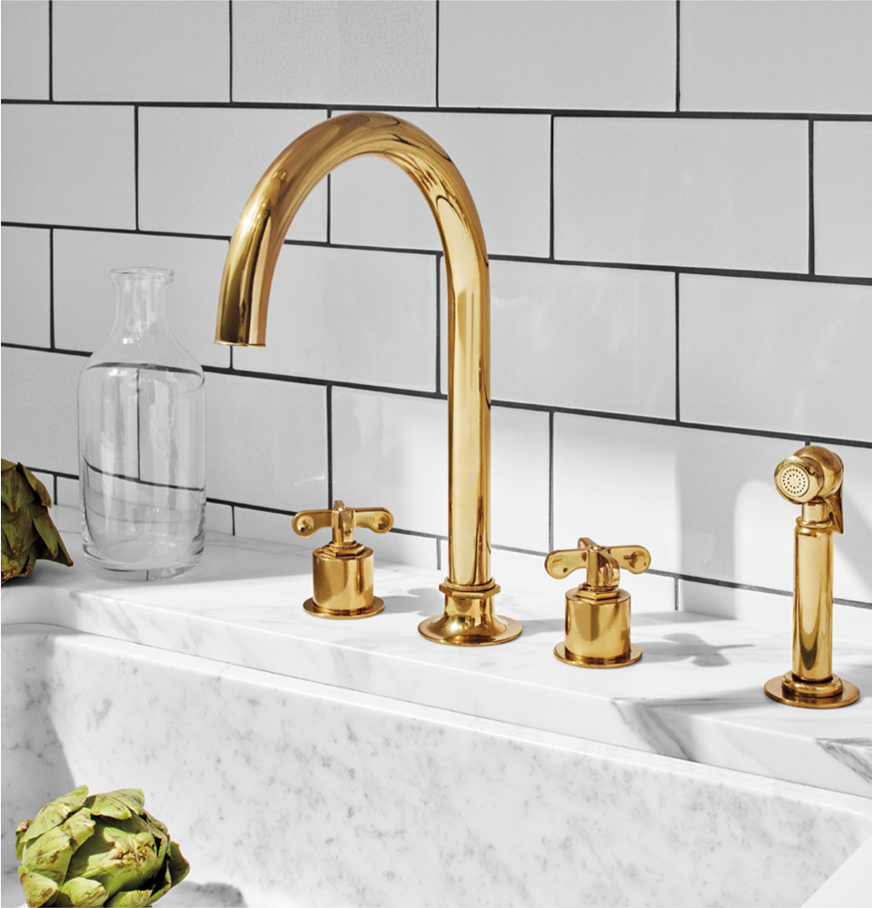 The rich finishes of our Calais collection make these uniquely styled fittings an attraction in any kitchen or bar.