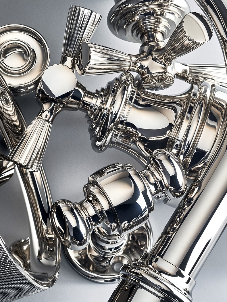 A rich, sophisticated finish that recalls luxury timepieces and fine jewelry, developed exclusively for Waterworks.