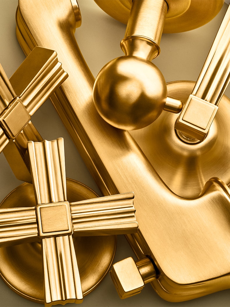 A warm luminous metal that elevates all styles of design, making them feel richer and more sophisticated. Over time, it assumes a slightly deeper tone.